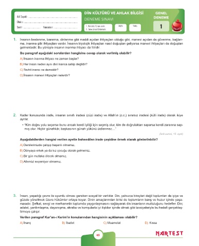 3. İnsan, yaşadığı çevre ile uyumlu olması gereken sosyal bir varlıktır. Din, yalnızca bireyleri değil toplumları da iyiye ve