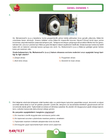 5. Dinî değerler etrafında birleşerek ortak hareket eden ve yardımlaşan toplumlar yaşadıkları sosyal, ekonomik ve siyasi