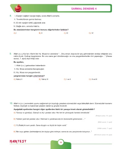 10. Allah’ın (c.c.) evrendeki uyumu sağlamak için koyduğu yasalara sünnetullah veya âdetullah denir. Sünnetullah kavramı