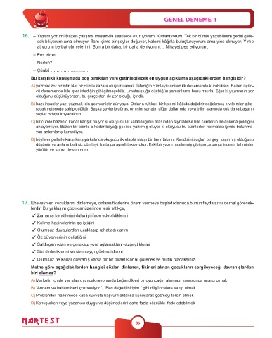 B) bazı insanlar yazı yazmak için gelmemiştir dünyaya. Onların ruhları, bir kalemi kâğıda değdirir değdirmez kıvılcımlar çıka-