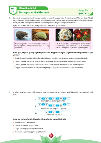 3. Canlılarda genlerin işleyişinde meydana gelen ve genellikle geçici olan değişimlere modifikasyon denir. Modifi-