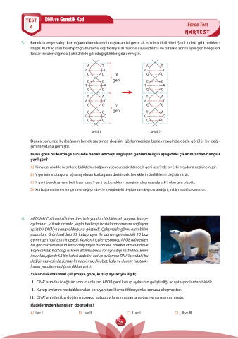 3. Benekli deriye sahip kurbağanın beneklerini oluşturan iki gene ait nükleotid dizilimi Şekil 1'deki gibi belirlen-