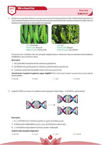 14. Aşağıda K DNA’sının hatasız bir şekilde kendini eşleyerek oluşturduğu L ve M DNA’ları gösterilmiştir.