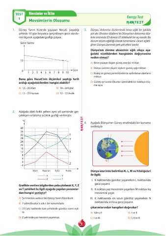1. Güney Yarım Küre'de yaşayan Necati, yaşadığı 3. Dünya, dolanma düzleminde biraz eğik bir şekilde
