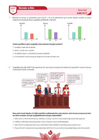 7. Birbirlerine komşu ve yükseltileri aynı olan K, L, M ve N şehirlerinde aynı tarihte ölçülen sıcaklık ve basınç