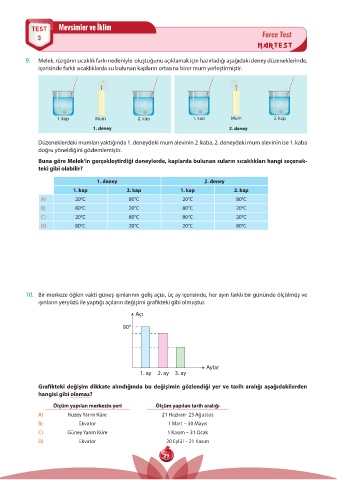 Buna göre Melek’in gerçekleştirdiği deneylerde, kaplarda bulunan suların sıcaklıkları hangi seçenek-