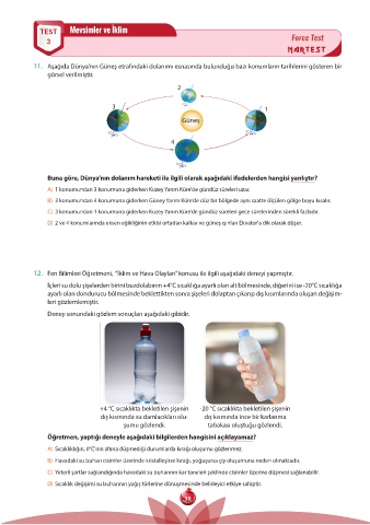 12. Fen Bilimleri Öğretmeni, “İklim ve Hava Olayları” konusu ile ilgili aşağıdaki deneyi yapmıştır.