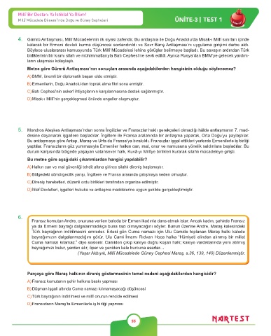 Millî Mücadele Dönemi'nde Doğu ve Güney Cepheleri                        ÜNİTE-3 |    TEST 1