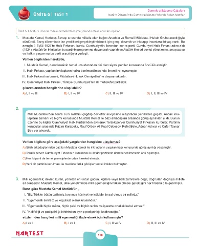 ÜNİTE-5 |     TEST 1                            Atatürk Dönemi'nde Demokratikleşme Yolunda Atılan Adımlar