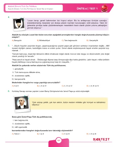 Atatürk Dönemi Türk Dış Politikasının Temel İlke ve Amaçları             ÜNİTE-6 |    TEST 1