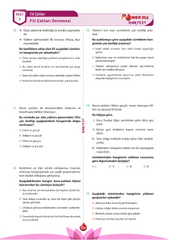 test çözülmeli. D) Piyanoyu üst kata beş kişi zor taşıdık.