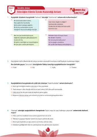 1 Sözcüğün Cümle İçinde Kazandığı Anlam