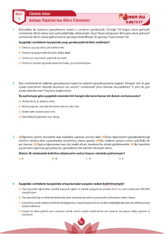 3. (I)Öğrenme eylemi, öncesinde bazı hazırlıklar yapmayı zorunlu kılar. (II)Önce öğrenmenin gerçekleştirileceği