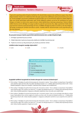 Aşağıdaki tariflerin hangisinde bu listede olmayan bir malzeme kullanılmıştır?